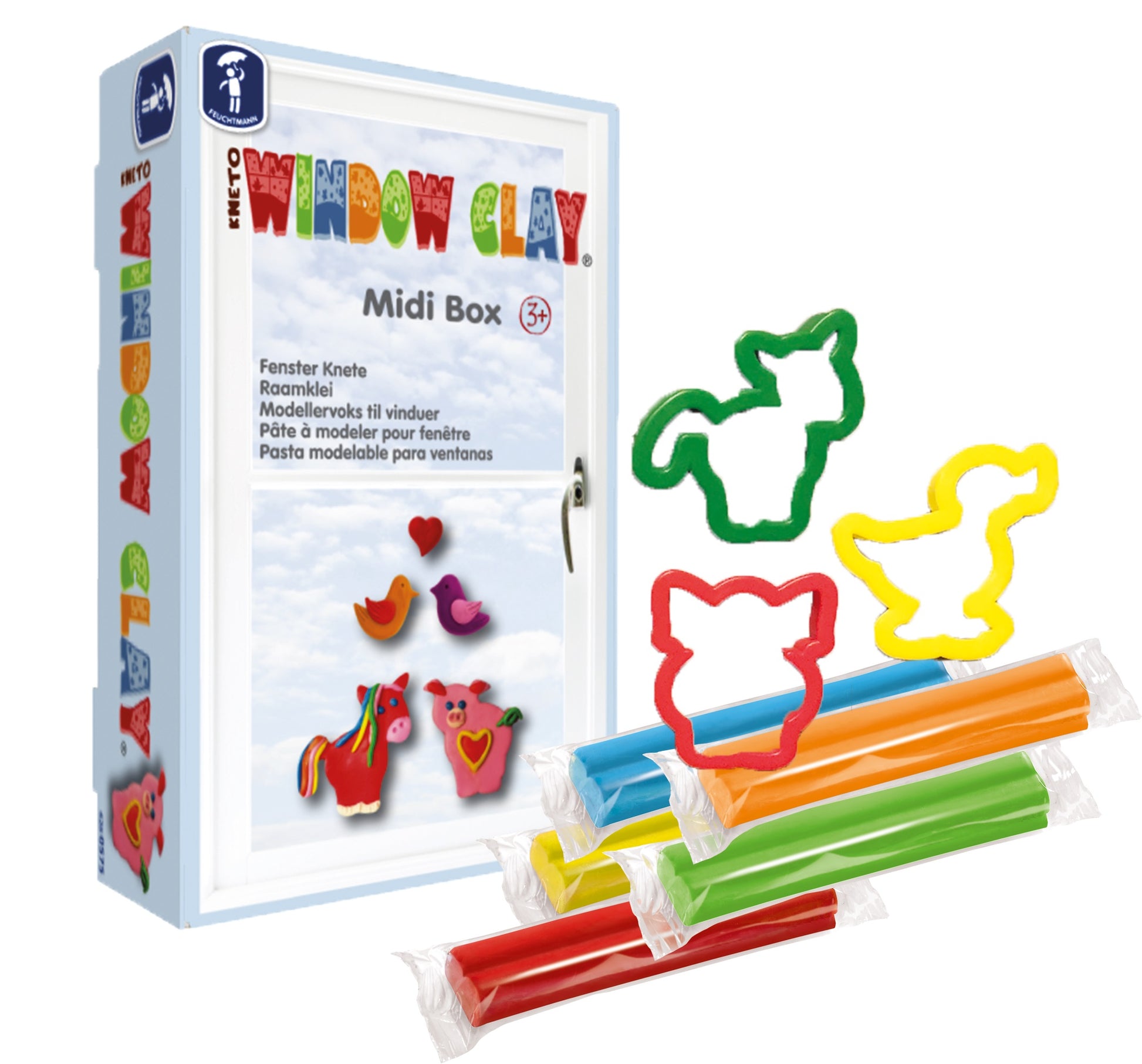 Mit dem einzigartigen WINDOW CLAY lassen sich phantasievolle Fensterbilder gestalten. Die modellierten Figuren haften vertikal an Scheiben und sonstigen glatten Flächen. Sie können jederzeit und rückstandslos wieder abgenommen werden.